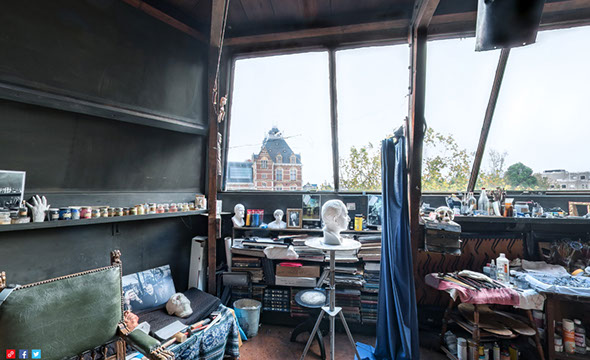 Om u een indruk te geven van Carel Willinks atelier, kunt u een fantastisch 360 graden panorama bekijken door op de foto's te klikken. De foto's zijn gemaakt door Alphons Nieuwenhuis