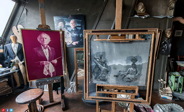Om u een indruk te geven van Carel Willinks atelier, kunt u een fantastisch 360 graden panorama bekijken door op de foto's te klikken. De foto's zijn gemaakt door Alphons Nieuwenhuis